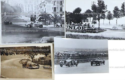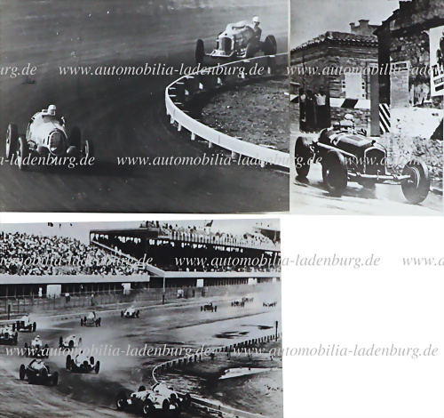Konvolut 3tlg., darunter, original s/w Aufnahme sowie 2 s/w Abzüge (60 Jahre), u.a., Tazio Nuvolari auf Alfa Romeo P3 (Suderia Ferrari), Coppa Acerbo 1935, Tazio Nuvolari auf Alfa Romeo 12C-36, Vanderbilt Cup 1936; Rennaufnahme Vanderbilt Cup 1937, verschiedene Formate