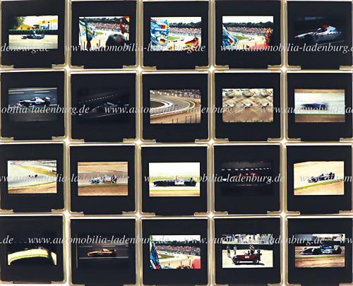 Konvolut 93 Farbdiapositive, Großer Preis von Deutschland 1995, darunter zum Beispiel Aufnahmen, "Johnny Herbert auf Benetton B 595", "Jean Alesi auf Ferrari 412 T2", "Siegerrunde Michael Schumacher auf Benetton B 595"... Fahrzeuge wie Tyrrell 023, Sauber C14, Mika Häkkinen auf McLaren MP... mehr