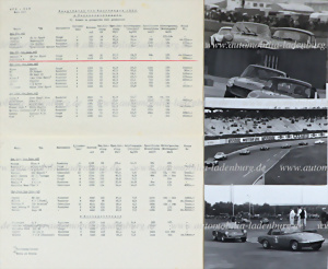 Konvolut 4 original s/w Aufnahmen, u.a. Intern. Rhein-Pokalrennen 1968; Intern. Flugplatzrennen Mainz- Finthen, Gebhard Lippuner auf Lotus Elan; Norisring 1966, Lippuner auf Lotus Elan 1600...jeweils 13x18cm, dazu 2 Seiten "Hauptdaten von Sportwagen 1952" inklusive Preisangaben