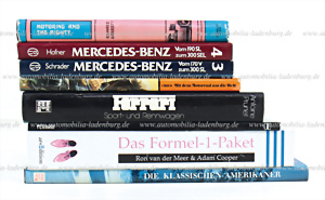 Bücherkonvolut 8 tlg.,, darunter "Ferrari Sport-und Rennwagen Prototypen" von Antoine Prunet; "Ferrari" von Brian Laban; "Die Klassischen Amerikaner"; zwei Bände (3 und 4) "Mercedes-Benz Automobilie" von Schrader/ Hofner; "Mit dem Motorrad um die Welt" von Crius; "Motoring and the Mighty" von Richard Garrett, sowie "Das Formel-1-Paket" von Ron van der Meer/Adam Cooper