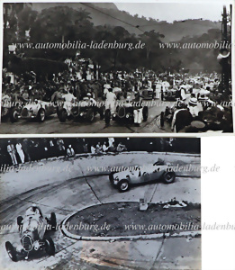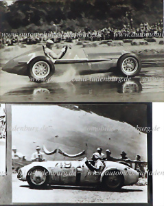Konvolut 2tlg., darunter original s/w Aufnahme, Juan Manuel Fangio auf Alfa Romeo 158, GP Silverstone 1950, dazu s/w Abzug, Bergrennen "Freiburg Schauinsland 1951", wohl Veritas Rennwagen, verschiedene Formate