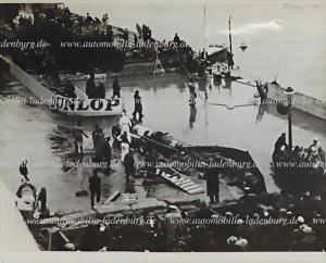 Original s/w Aufnahme, Unfallaufnahme GP Monaco 1936 der Rennwagen Alfa Romeo 8C-35 (Scuderia Ferrari) von Giuseppe Farina und Mercedes Benz W 25 von Manfred von Brauchitsch, 20x25cm, Fehlstellen an den Ecken, ansonsten guter Zustand