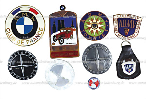 Konvolut 9tlg., darunter Karosserieembleme, "Eisenacher Motorenwerke", Plaketten, Schlüsselanhänger und Ansteckpin "BMW Club de France", "Allgemeiner Deutscher Motorensport Verband", "ADMV Tourist", "Dixi BMW 3/15 - 10 Jahre Dixi Club München"