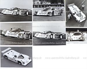 Konvolut 7 s/w Aufnahmen, Michael und Mario Andretti neben Porsche 956, Derek Bell und Hans Stuck neben Porsche 962C, Joest Porsche 962C, etc., verschiedene Formate