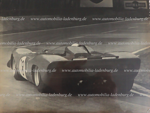 Original s/w Aufnahme, Ferrari 312P (#0870), Rennwagen von P. Rodriguez/David Piper, bei Trainingsfahrten Le Mans 1969, 18x24cm