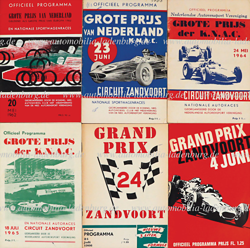 Konvolut 6 Programmhefte, darunter, Großer Preis der Niederlande 1962, 1963, 1964, 1965, 1966, 1967