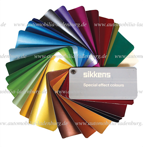 Anfang 80er Jahre, Lackmusterkarte Sikkens "Special effect colours", insgesamt 30 Lackmustern für verschiedene Hersteller wie Porsche, Lamborghini, Maserati, Ferrari etc., außen leichte Gebrauchsspuren, sonst guter Zustand
