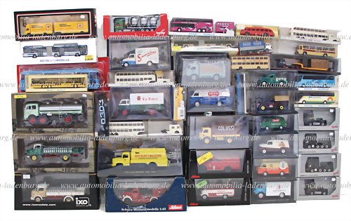 Konvolut Modellautos/Busse, 41tlg., verschiedene Hersteller und Größen, darunter zB., „ Fiat 238 Plasmon“, „Lancia Ardea 800“, „Fiat 1100 ELR Telonato“, „OM Leoncino Furgone“, „Fiat 615“, „OM Tigrotto Frigorifero“, „Borgward B 2500“, 1:34, „Mercedes-Benz O19“, „Opel Blitz S3T“, „ Herpa DB Ackermann... mehr
