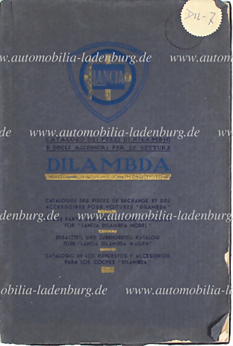 1930, Ersatzteilpreisliste mit Accessoires für Lancia Tipo Dilambda, Ausgabe Januar 1930, 186 Seiten, viersprachig, leichte Gebrauchsspuren am Umschlag, ansonsten guter Zustand
