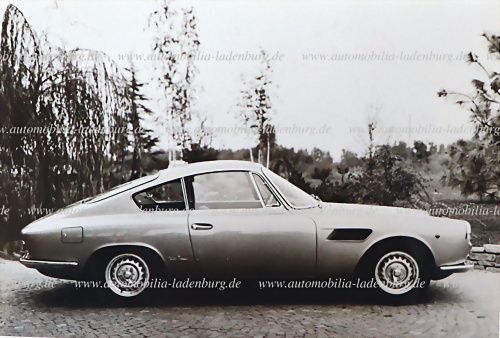 1960er Jahre, original s/w Aufnahme/Werksfoto Pininfarina Ferrarina Tipo 850 GT Prototyp, Rückseite gestempelt "Peter Coltrin", 10,5x15cm, seltene Aufnahme