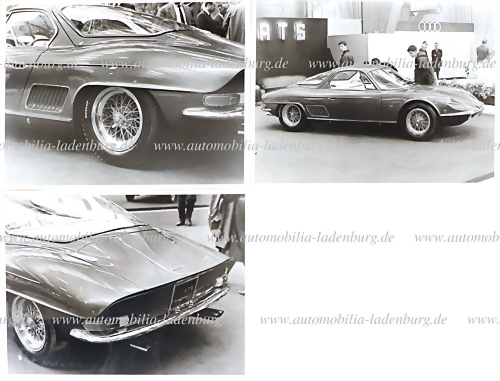 1963, Konvolut 3 original s/w Aufnahmen ATS 2500 GT auf Messestand, Rückseitig gestempelt, 18x24cm