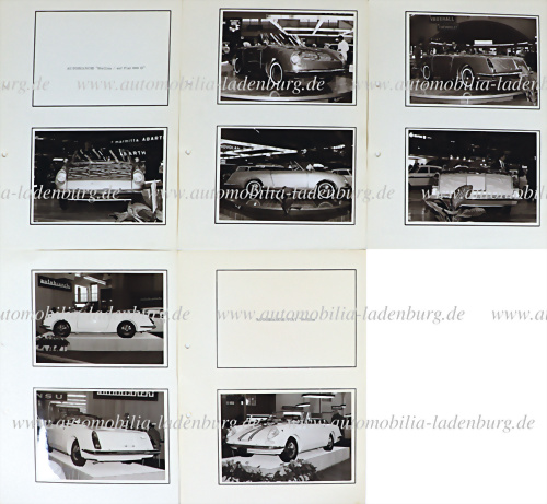1963, Konvolut 8 original s/w Aufnahmen Autobianchi Fiat "Stellina" auf Messestand, 5 x Autosalon Turin, alle auf Papier verklebt, 10,5x14,5cm
