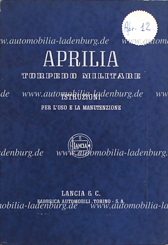 Betriebsanleitung Lancia Aprilia "Torpedo Militare", Ausgabe April 1942, 122 Seiten ital. Text, guter Zustand, selten