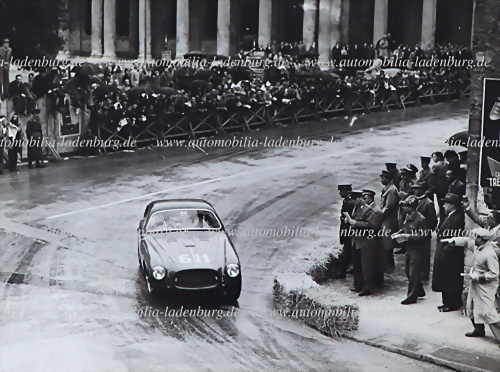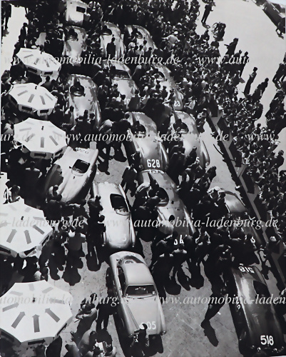 1955, original s/w Aufnahme Mille Miglia 1955, u.a. die Fahrzeuge, Ferrari 500 Mondial (#0536MD) von Luigi Taramazzo; Ferrari 118LM Scaglietti Spyder (#0484LM) von Piero Taruffi; Ferrari 500 Mondial Scaglietti Spyder (#0528MD) von Carlo Leto di Priolo; Moretti 750 Gran Sport; OSCA MT4 1100 von... mehr