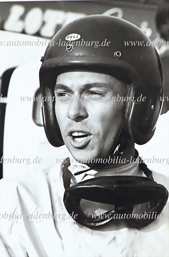 Original s/w Aufnahme Tony Brooks auf Ferrari Dino 246F1, 200 Aintree 1959, gestempelt "CentralPressPhotosLtd.", 20x25cm
