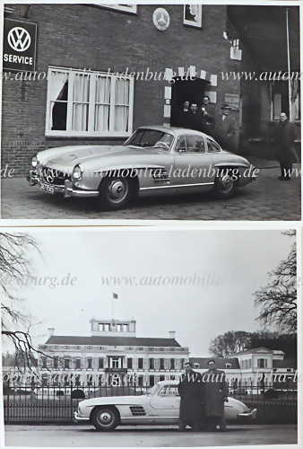 Konvolut 2 original s/w Aufnahmen Mercedes-Benz Typ 300SL, je 18x24cm