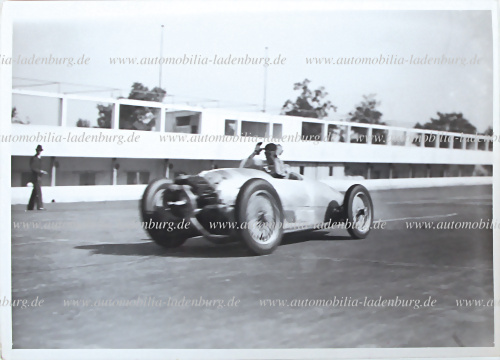 Original s/w Pressefoto Carlo Felice Trossi bei Testfahrten, mit seinem in Kooperation mit Augusto Monaco entwickelten Trossi Monaco Rennwagen mit 16-Zylinder Flugmotor, 1935 Monza, gestempelt "Keystone", selten, 15,5x21cm