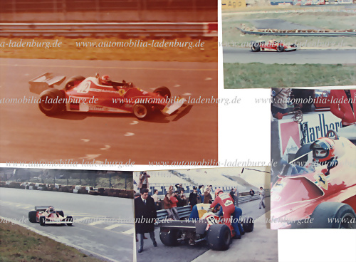 Vallelunga 1977, Konvolut 5 original Farbaufnahmen, Niki Lauda bei Testfahrten auf Ferrari 312 T2 (Wagen von Reutemann), versch. Formate