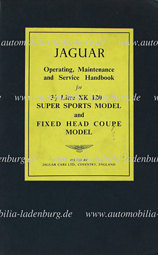 1952, Handbuch/Betriebsanleitung 3 ½ Liter Jaguar XK120 „Super Sport Model“ und „Fixed Head Coupe Model“, englischer Text, guter Zustand.