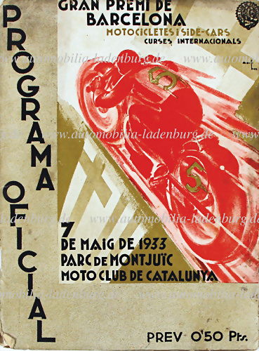 Rennprogramm "Gran Premi de Barcelona", 1933 (erster Grand Prix für Motorräder in Spanien), ohne Teilnehmerliste, Sieger Klasse bis 250ccm Hans Soenius..., guter Zustand