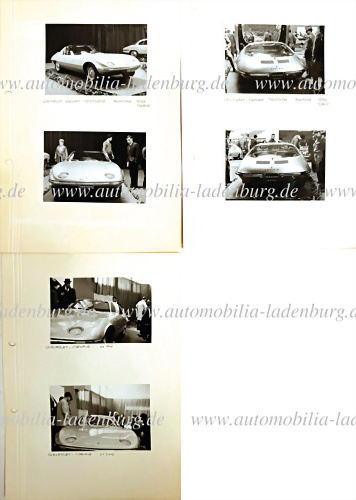 1963, Konvolu 6 original s/w Aufnahmen, Chevrolet Corvair Testudo Bertone, Salon Turin 1963, auf Karton, Fotogröße 9x12,5cm