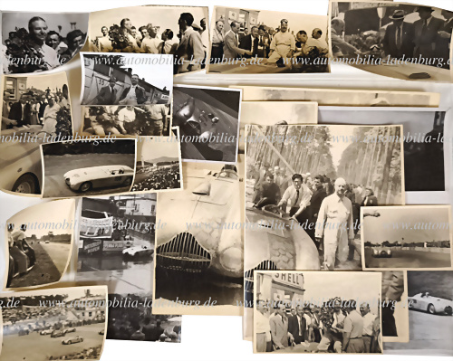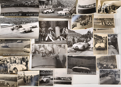 Konvolut 22 original s/w Aufnahmen Toni Ulmen verschiedene Rennsportveranstaltungen, Startszenen, Ulmen im Cockpit Veritas RS, wie Hockenheim, Nürburgring..., sowie eine Aufnahme Ausfahrt zum Mahnmal von Bernd Rosemeyer 1950, verschiedene Formate