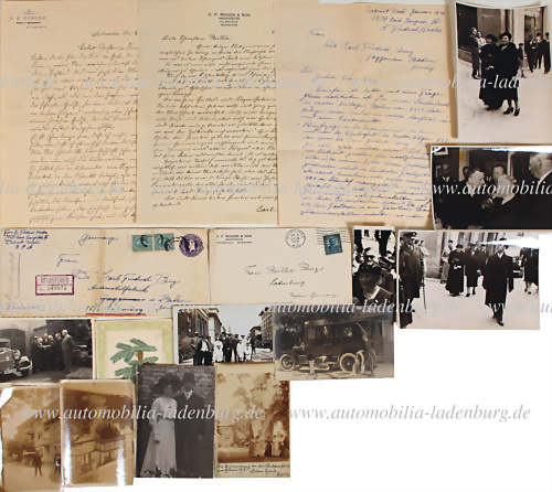Konvolut darunter handgeschriebener Brief von Carl.F.Ringer (Cousin) an Bertha Benz, datiert 24.03.1900; handgeschriebener Brief Carl. F. Ringer, datiert 25.01.1902; handgeschriebener Brief datiert Pforzheim 10.03.1908; handgeschriebenes Beileidsschreiben von Carl.F.Ringer an Bertha Benz, datiert... mehr