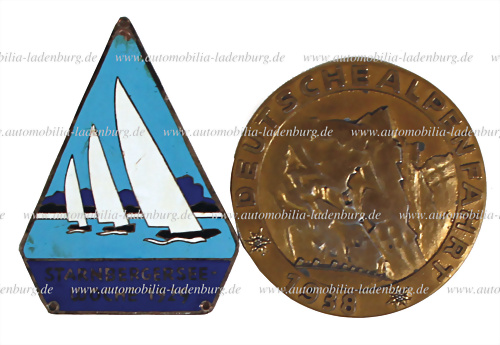 Konvolut 2 Plaketten darunter "Deutsche Alpenfahrt 1938" Durchmesser 8cm, sowie "Starnbergersee-Woche 1929", 9x7cm