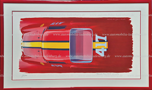 Handsignierter und limitierter Kunstdruck Ferrari 250GT Tour de France, signiert Hideki Yoshida, limitiert 008/100, (gerahmt), 66x110cm, guter Zustand