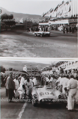Konvolut 2 original s/w Aufnahmen Strling Moss/ Peter Collins auf Mercedes-Benz 300SLR, 1955 Targa Florio, schöne Aufnahmen, je 8,5x11,5cm