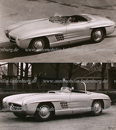 Konvolut 2 original s/w Werksfotos Mercedes-Benz 300SLS, seltene Aufnahmen, 12x23cm, sowie 13x22cm
