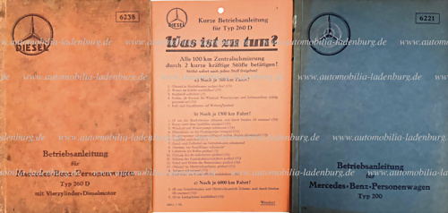 Konvolut 2tlg., darunter 1936, Betriebsanleitung Mercedes-Benz Typ 260D, inkl. Kurzbetriebsanleitung, 1935, Betriebsanleitung Mercedes-Benz Typ 200, kleine Gebrauchsspuren am Umschlag, ansonsten guter Zustand