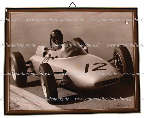Handsignierte gerahmte original s/w Aufnahme Dan Gurney auf Porsche 804F1, handsigniert von Julius Weittmann 1962, 25x31cm