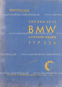 1937, Ersatzteilliste BMW 6 Zylinder-Wagen Typ 326, Ausgabe 1937, innen leicht fleckig, ansonsten guter Zustand