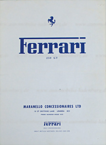 ca. 1962, Faltprospekt Ferrari 250GT Maranello Concessionaires LTD, 4 Seiten, innen mit Darstellung und Preise der Modelle Pininfarina Coupe 2+2, Pininfarina Cabriolet, Scaglietti Berlinetta, sowie Scaglietti Spyder California, engl. Text