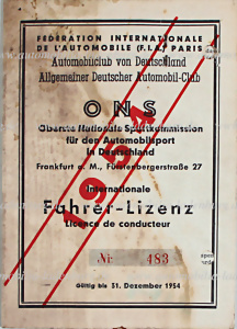 1954, Internationale Fahrer Lizenz Nr. 483, innen mit Passfoto und Handsignatur, Herbert Linge und Hans Herrmann holten sich in diesem Jahr den Klassensieg 1500ccm auf Porsche 550 Spyder bei der Mille Miglia 1954