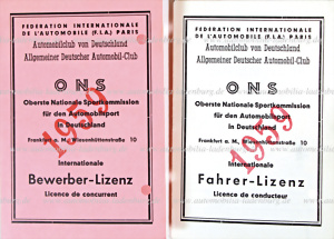 1959, Konvolut 2tlg., Internationale Bewerber- und Fahrerlizenz, Herbert Linge, handsigniert mit Passfoto, unter anderem belegte Herbert Linge in diesem Jahr zusammen mit P. E. Strähle und E. Mahle auf Porsche 550 Spyder den zweiten Platz im Gesamtklassement der Targa Florio