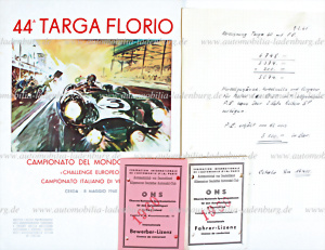 Targa Florio 1960, Konvolut 4tlg., darunter Internationale Fahrerlizenz mit Passfoto und Handsignatur, Internationale Bewerber Lizenz mit Handsignatur, handschriftliche Abrechnung Targa Florio mit Paul Ernst Strähle, datiert 9.2.1961, dazu Zeitschrift 44. Targa Florio (Numero Unico), Herbert Linge und Paul Ernst Strähle auf Porsche 356 B Carrera Abarth, 8. Platz im Gesamtklassement
