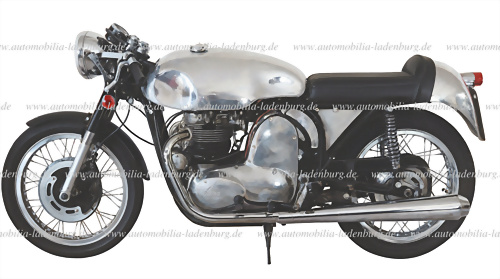 1973, 750 cm³ Kompressor-Rennmotorrad (Einzelstück), handgefertigt Motorrad mit Triumph-Dreizylinder-Viertaktmotor und Shorrock Super Charger-Kompressoraufladung, montiert in einem leichten Norton-Manx-Rennrahmen, Aluminiumtank im Café-Racer-Stil, Doppelauspuffanlage, Doppelscheibenbremse vorne,... mehr