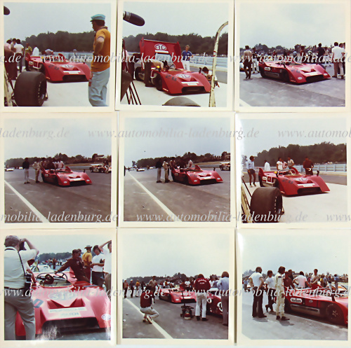 Konvolut 9 original Farbaufnahmen Jo Siffert auf Porsche 917/10, Watkins Glen 1971, je 9x9cm