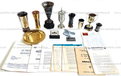 Rennsportjahr 1959-1963, Konvolut aus dem Rennfahrernachlass von Dieter Schmid, darunter 33 Siegertrophäen Dieter Schmid auf Alfa Romeo Giulietta Ti, z.B. Ratisboner Bergrennen 1963; Sudefeldbergrennen 1963 (1.Platz); 1.BSCC Flugplatzrennen 1961; 3. Schorndorfer Bergrennen 1962; Wasgaubergrennen... mehr