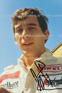 Handsignierte Farbaufnahme Ayrton Senna, 15x10cm