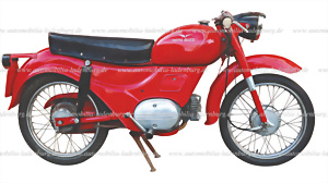 1963, Moto Guzzi Zigolo 110 Leichtmotorrad im original erhaltenen Zustand, mit 110-cm³-Zweitaktmotor, 3-Gang-Getriebe, Kickstarter, Trommelbremsen vorne und hinten, Vollstahlrahmen in charakteristischem Rot, verchromten Felgen mit Drahtspeichen, schwarzer Sitzbank mit Ziernähten, Tacho Veglia Borletti, Lenkerarmatur Brevetti Aprili, originale italienische Zulassungsdokumente von 1963 erhalten