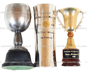 1967/1968, Konvolut 3 Siegerpokale darunter "Sierre Montana Crans 1968" , "Montseny 1967", "Mainz-Finthen 1967", Michel Weber auf Alfa Romeo GTA, Höhe 24/25cm