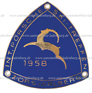 1958, Plakette „Int. Porsche Ski-Treffen Zürs/Arlberg“, emailliert, 8x8cm, sehr guter Zustand