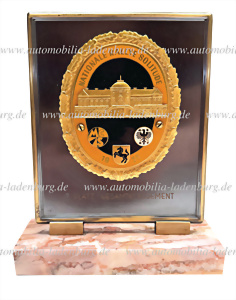 Trophäe 3. Platz Gesamtklassement Int. Rallye Solitude verliehen an Wolfgang Brand (NSU Werksrennfahrer), auf Mamorsockel, 18,5x15cm
