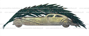 30er Jahre, Plakette Fahrzeug unter Tannenzweig, 3x12cm