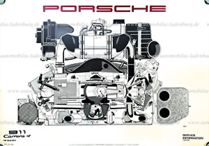 Konvolut 4 Kunststoff Werbeplakate / Werkstattaushänge „Service Information Technik“, Porsche 911 Carrera 4, je 59x84cm, gerollt