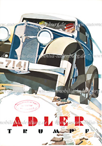 30er Jahre, "Adler Trumpf" Faltprospekt, innen mit Ansicht über techn. Besonderheiten, deutsch. text, gelocht, guter Zustand