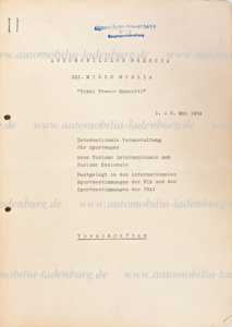 1954, deutsche Übersetzung des Reglements XXI. Mille Miglia, 21 Seiten